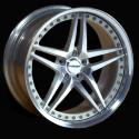 Kerscher RS: 3-teilige Alufelge mit hochglanzpolierten und pulverschichteten Stufenbetten. 17'' und 18''. 4-Loch oder 5-Loch mit verschiedenen Lochkreisen. Genaue Anpassung an Fahrzeug durch eine Vielzahl von Kombinationsmöglichkeiten von Innen- und Außenbetten.